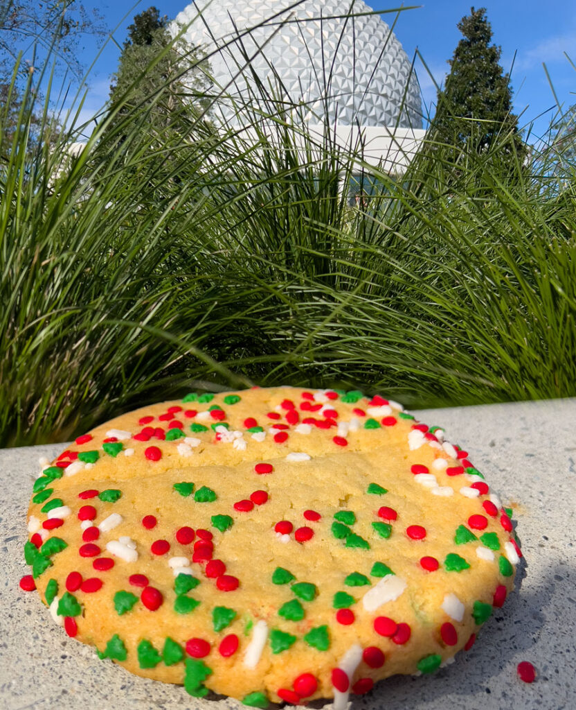 Our cookie adventure begins with this delectable Snickerdoodle cookie from our friends to the north. You may have had yummy Snickerdoodles over at Mickey’s Very Merry Christmas Party in the Magic Kingdom (and make no mistake, those are delicious!), but this cookie elevates “Snickerdoodle” to a whole new level. But we didn’t have time to snack for a long, for our next stop was only steps away…